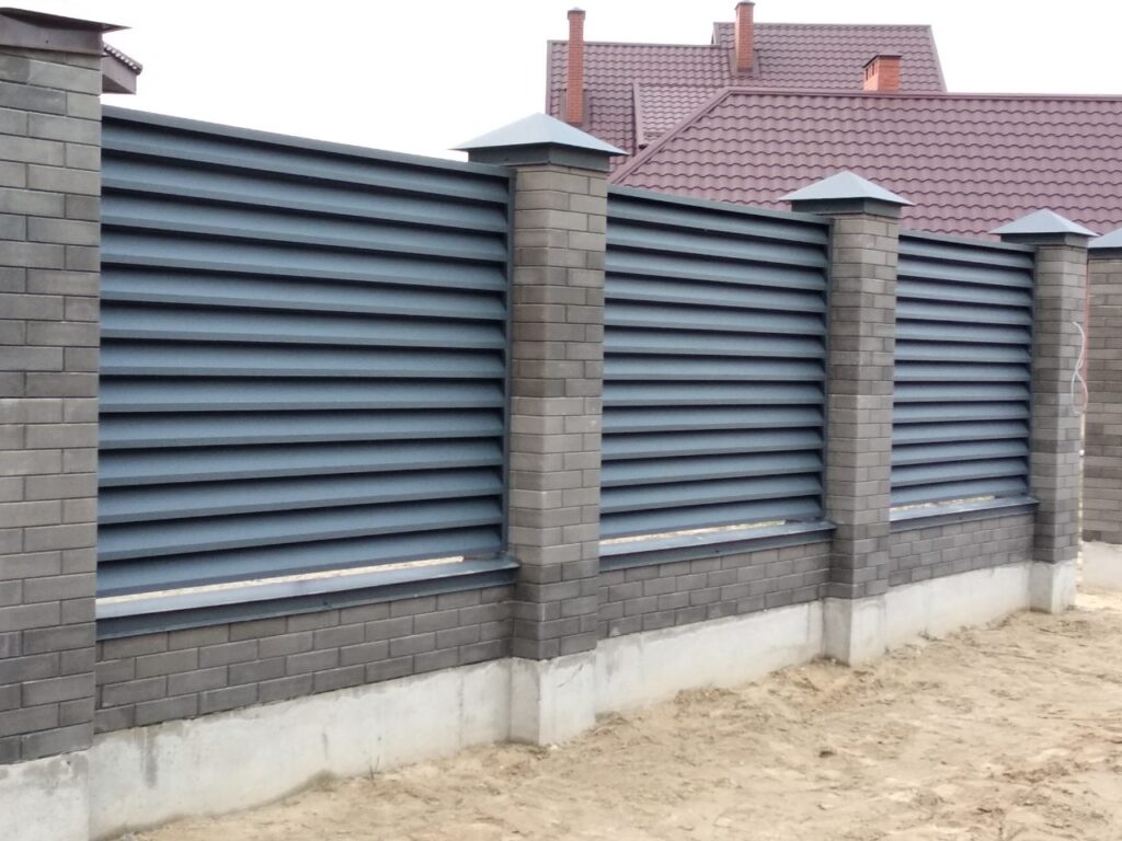 Заборы-жалюзи металлические ― это новый тип ограждений с горизонтальным заполнением пролетов. Внешне напоминают классические оконные жалюзи. Конструкция представляет собой жесткий металлический каркас, внутри которого под определенным углом расположены профилированные стальные планки. Изготавливается из оцинкованной стали с цветным полимерным покрытием – глянцевый и матовый полиэстер. Особую популярность получили заборы-жалюзи с имитацией под дерево.